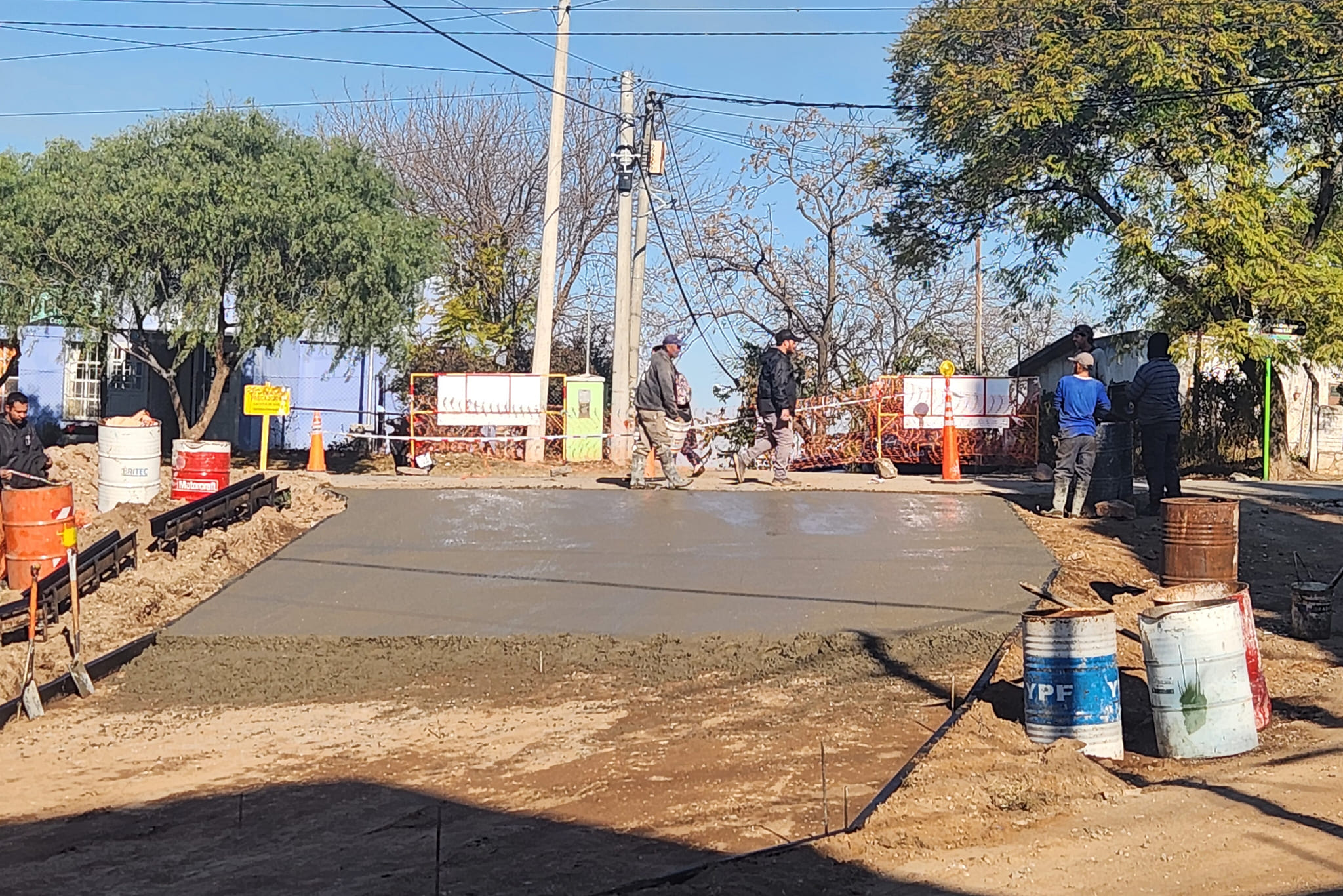 Se trata de 800 metros que se ejecutan sobre la calle Río Negro, y comprenden dos badenes restantes de hormigón, uno de los cuales se llevó a cabo esta semana en la intersección de Río Negro y Catamarca.