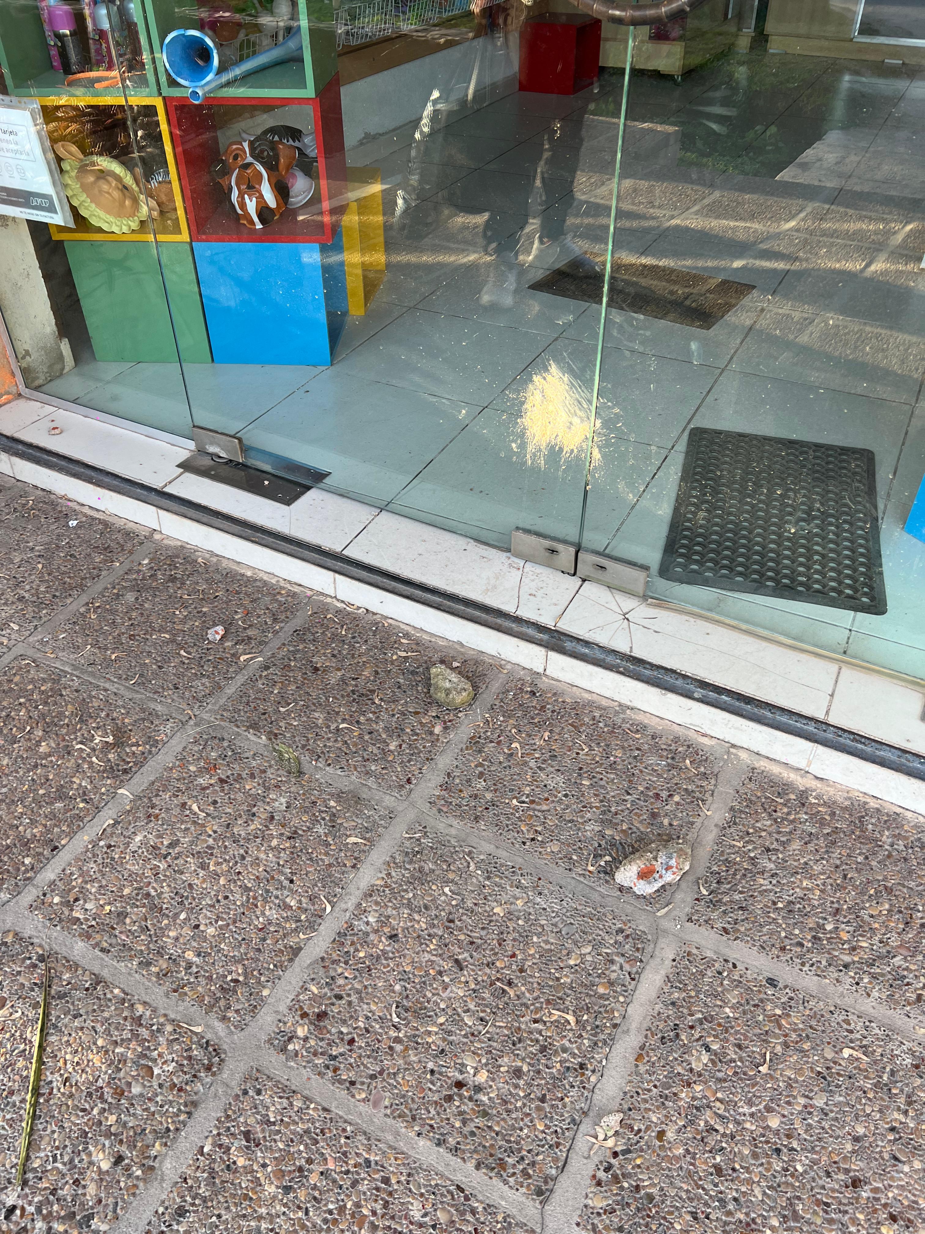 Previo al hecho, había roto la puerta de vidrio de acceso. Horas antes, la propietaria de un cotillón próximo al Instituto del Espíritu Santo, también sobre San Martín, denunció la rotura de sus vidrieras y las cerraduras forzadas.