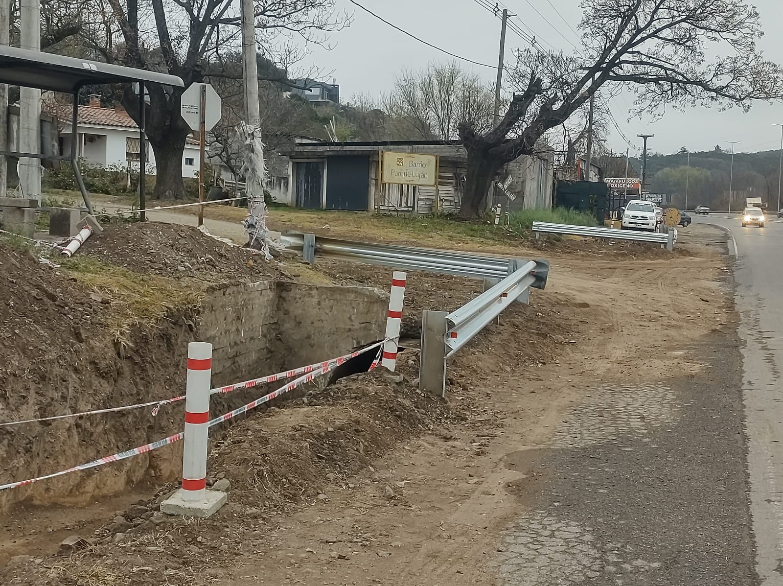 Además del problema de la falta de refugios, los vecinos padecieron hasta hace unos días, las inundaciones a la vera del camino por la falta de desagües en la banquina de la ruta, con las dificultades que significan para el desplazamiento de la gente de a pie. Después de insistir ante la Dirección provincial de Vialidad, los funcionarios reconocieron el reclamo y la empresa Camino de las Sierras destapó las alcantarillas y colocó guardrail en los alrededores.