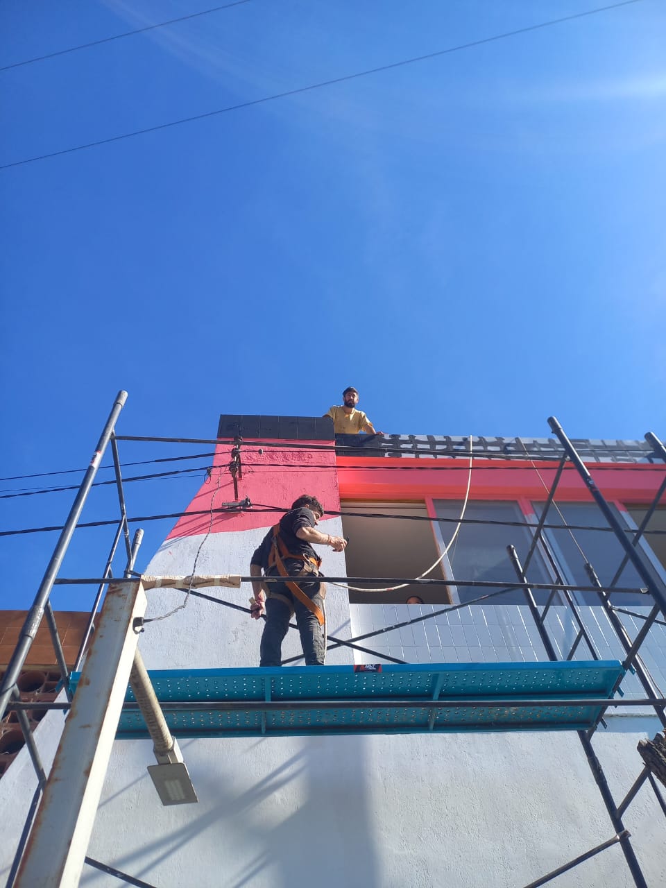 La ejecución del mural presentó notables desafíos técnicos debido a las características del frente del club. "Fue realmente dificultoso porque por los desniveles era un trabajo que no lo podíamos hacer de la manera en que se hacen las cosas en el club, entre todos. Había que subirse a andamios, con sus dificultades," explicó Quadro. La presencia de escaleras en la entrada principal también añadió complejidad a la instalación de los andamios.