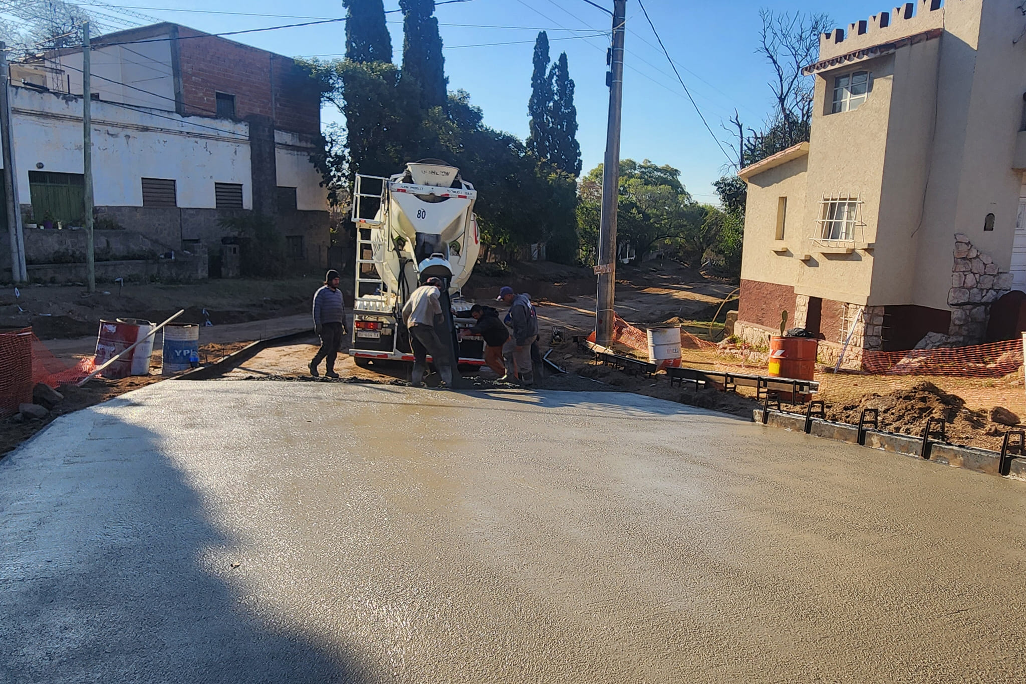 Se trata de 800 metros que se ejecutan sobre la calle Río Negro, y comprenden dos badenes restantes de hormigón, uno de los cuales se llevó a cabo esta semana en la intersección de Río Negro y Catamarca.