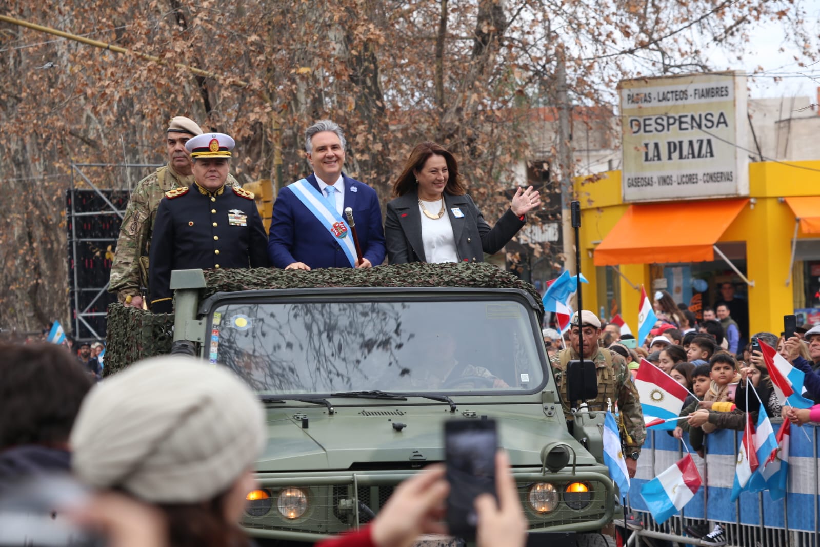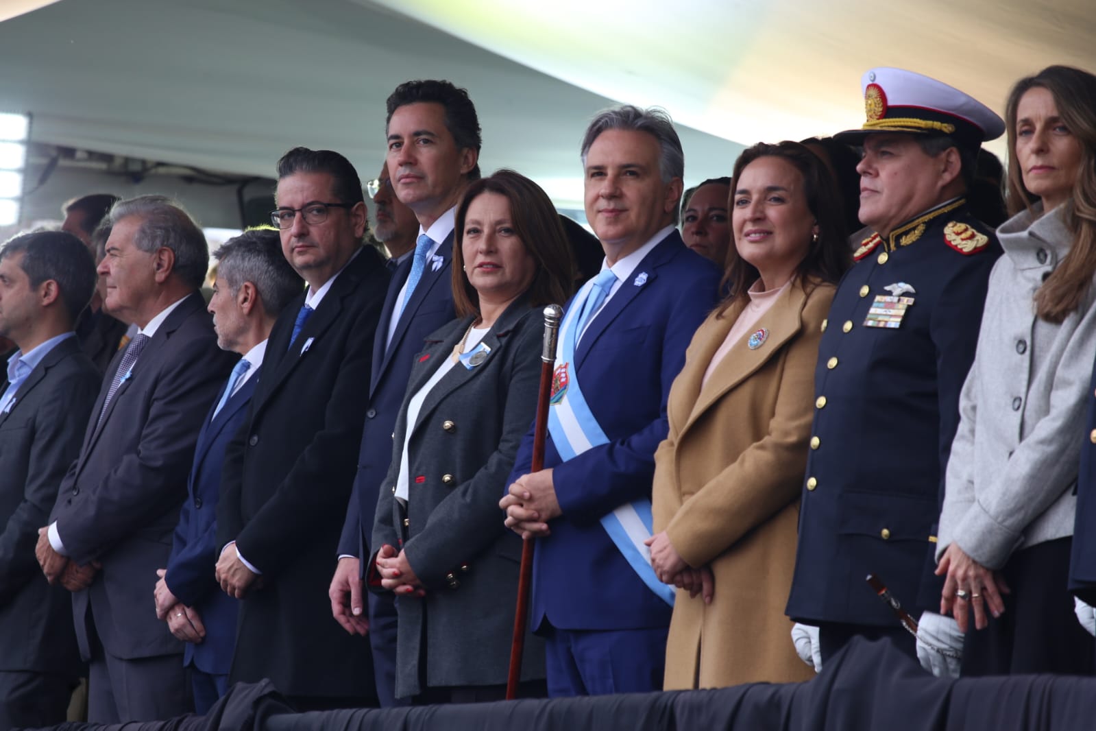 El desfile Cívico-Militar estuvo presidido por el gobernador de Córdoba Martín Llaryora, acompañado por la Intendente anfitriona Paola Nanini.