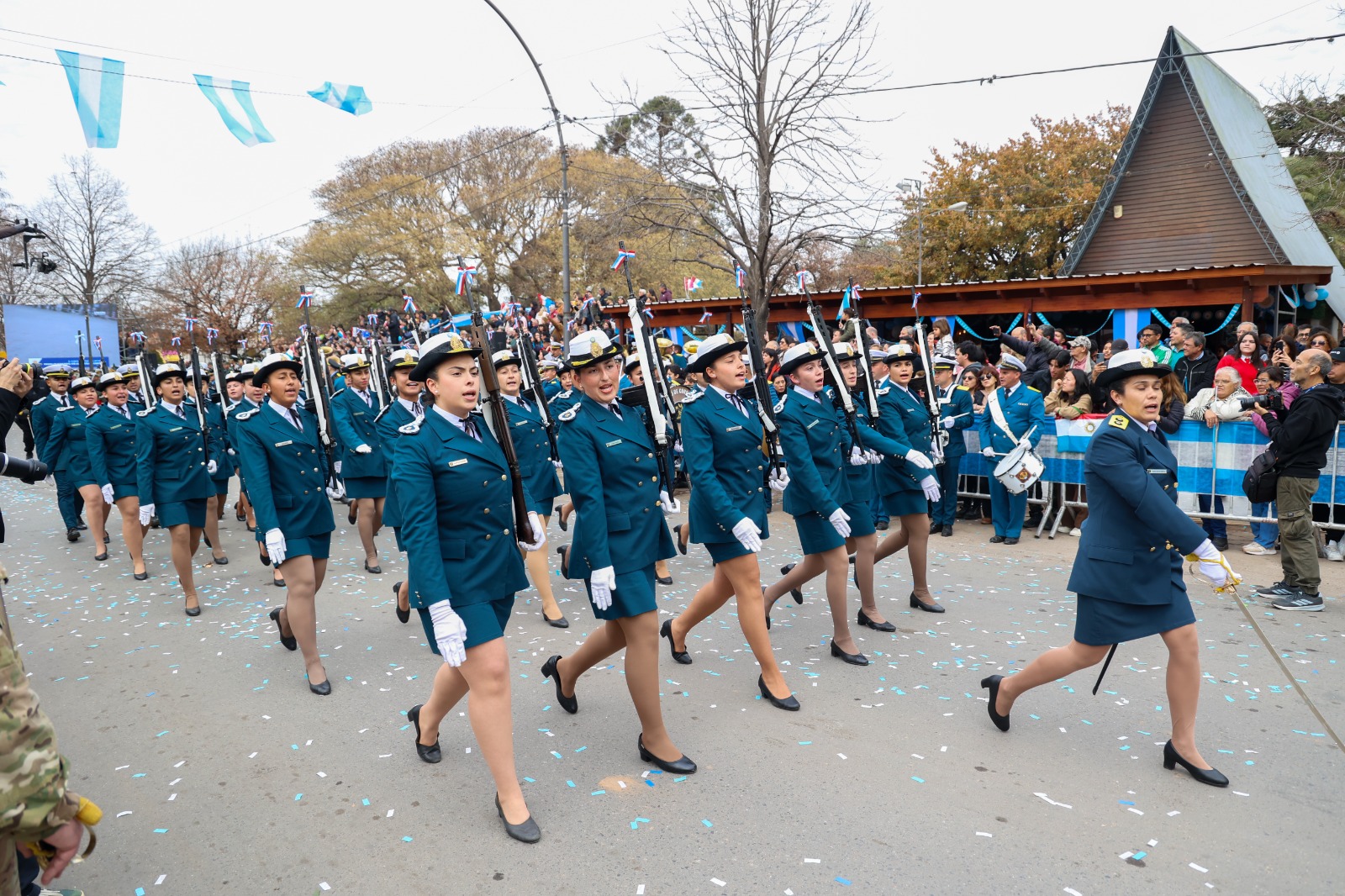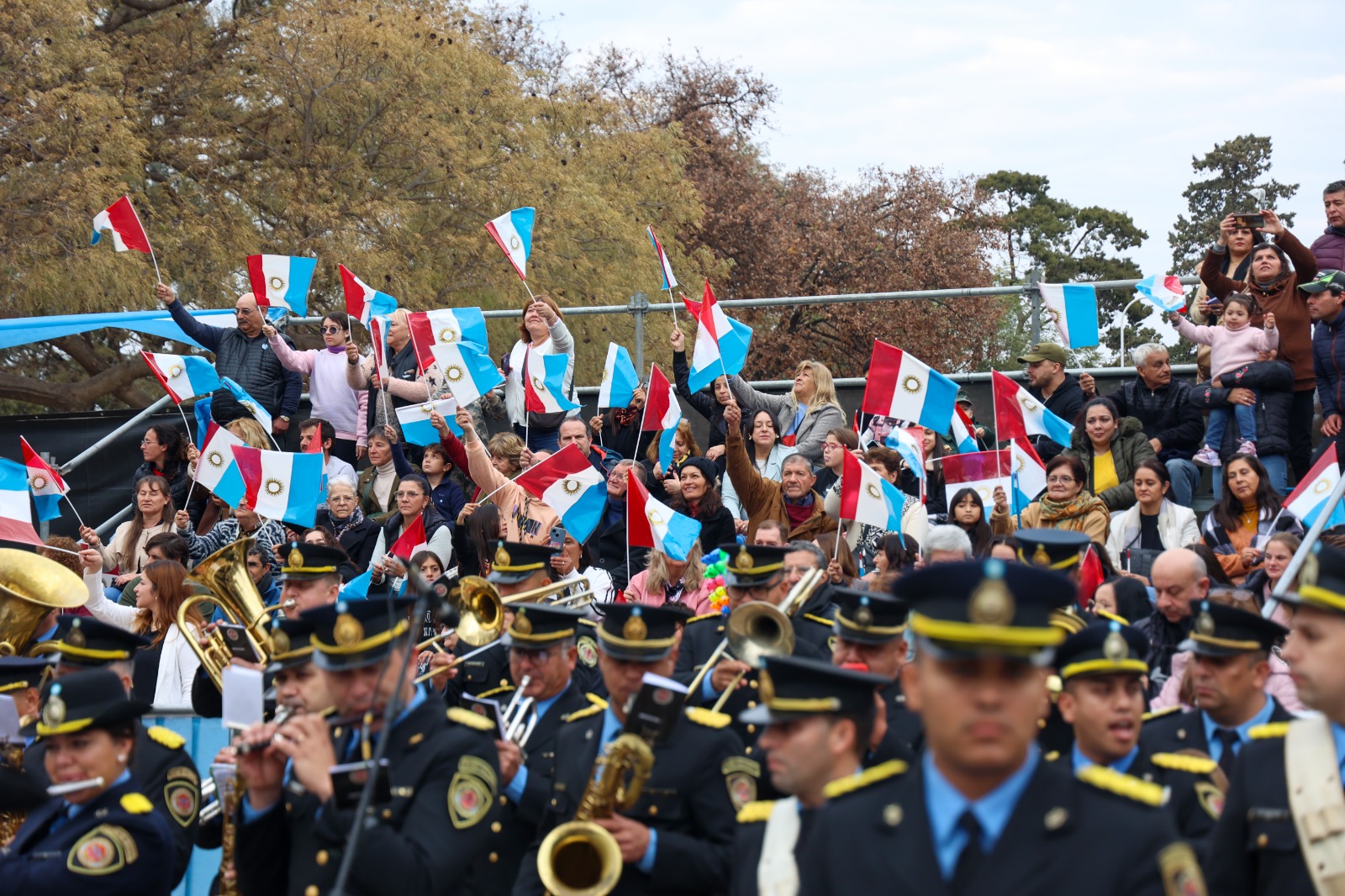 Además, desfilaron todas las fuerzas de seguridad que trabajan en el ámbito provincial, en tierra, aire y agua, además de Bomberos Voluntarios, autos antiguos, carretas y agrupaciones gauchas. El evento principal se llevó a cabo en la explanada del Lote X, donde se congregaron vecinos, autoridades y representantes de instituciones.