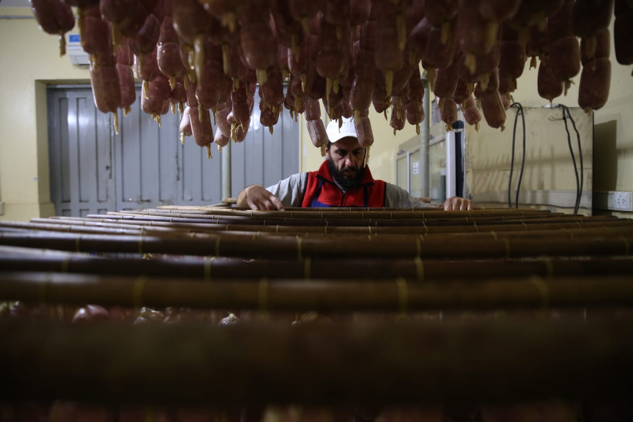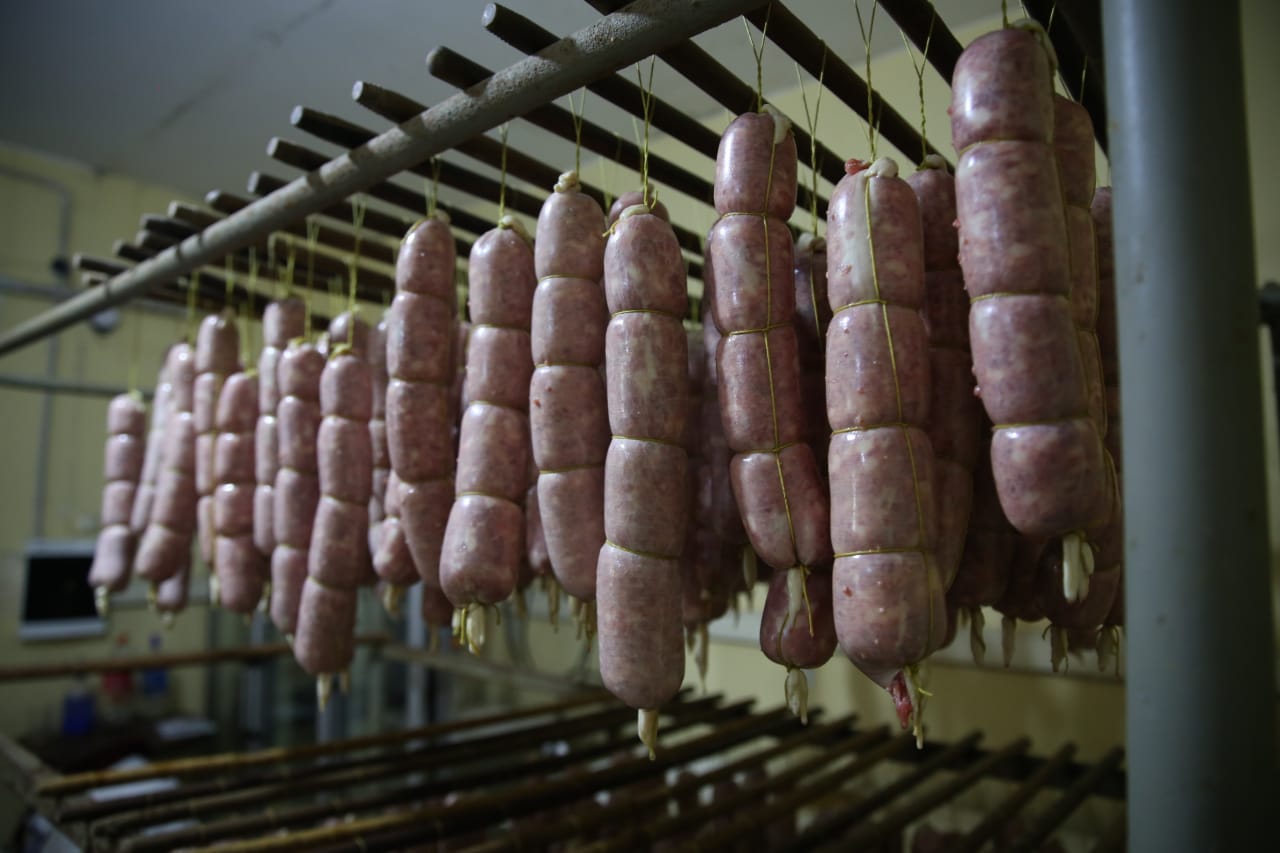 Respetando la receta del, se hicieron 600 kilos del embutido, que con la merma por los 25 días de estacionamiento exigidos, quedarán en cerca de 400 para cortar y servir.
