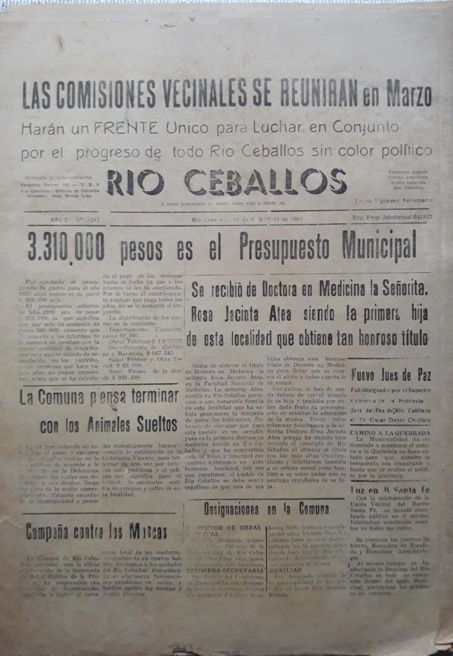 Falleció Jacinta Atea, la primera médica de Río Ceballos.
