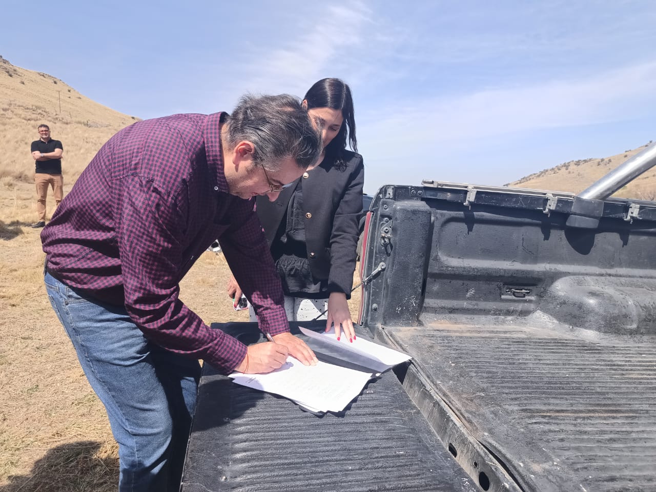 El convenio fue suscripto en la misma zona donde se encuentra el pequeño dique de contención del azud del río, aguas arriba, camino a La Cumbre.