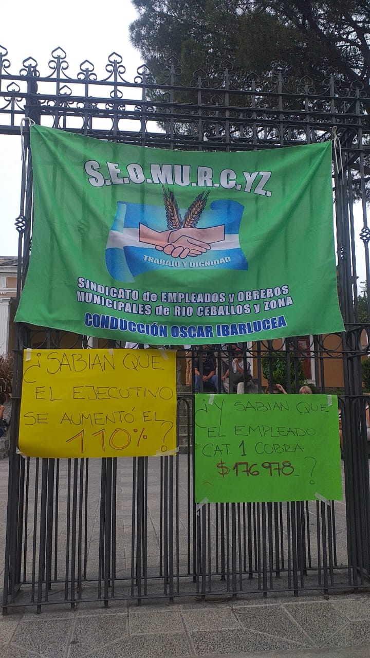 Esta mañana el frente del jardín municipal amaneció con pancartas que mostraban el sueldo de las categorías más bajas del escalafón y recordaban a el aumento en las remuneraciones del ejecutivo municipal.