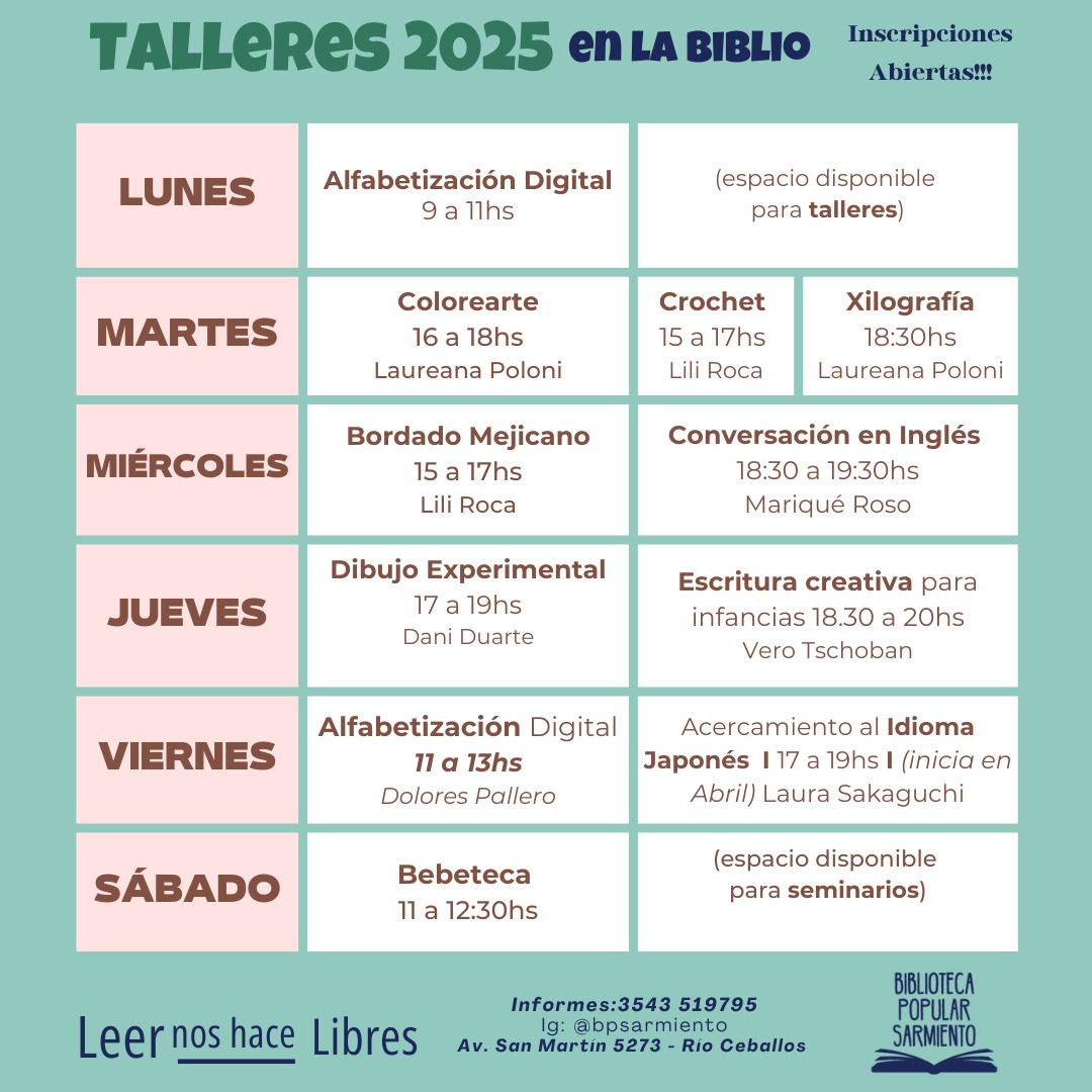Con una variada gama de temáticas los talleres 2025 de la Biblioteca Popular Sarmiento ya están en marcha.