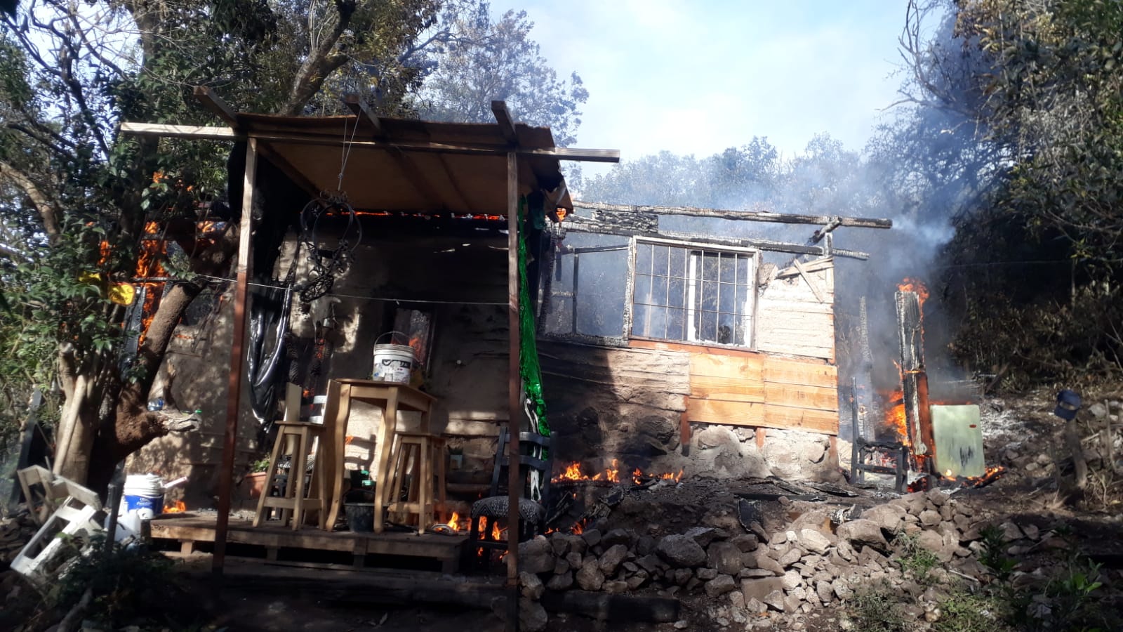 Al comunicarse con los bomberos voluntarios le manifestaron que el único móvil con el que contaban se encontraba trabajando en un incendio en el Camino El Cuadrado.