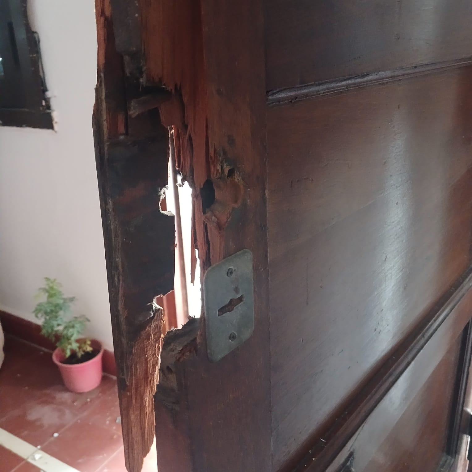 Lucía Duarte y Carlos Luna se encontraron con la puerta de su vivienda destrozada el pasado jueves 17 al volver del trabajo.