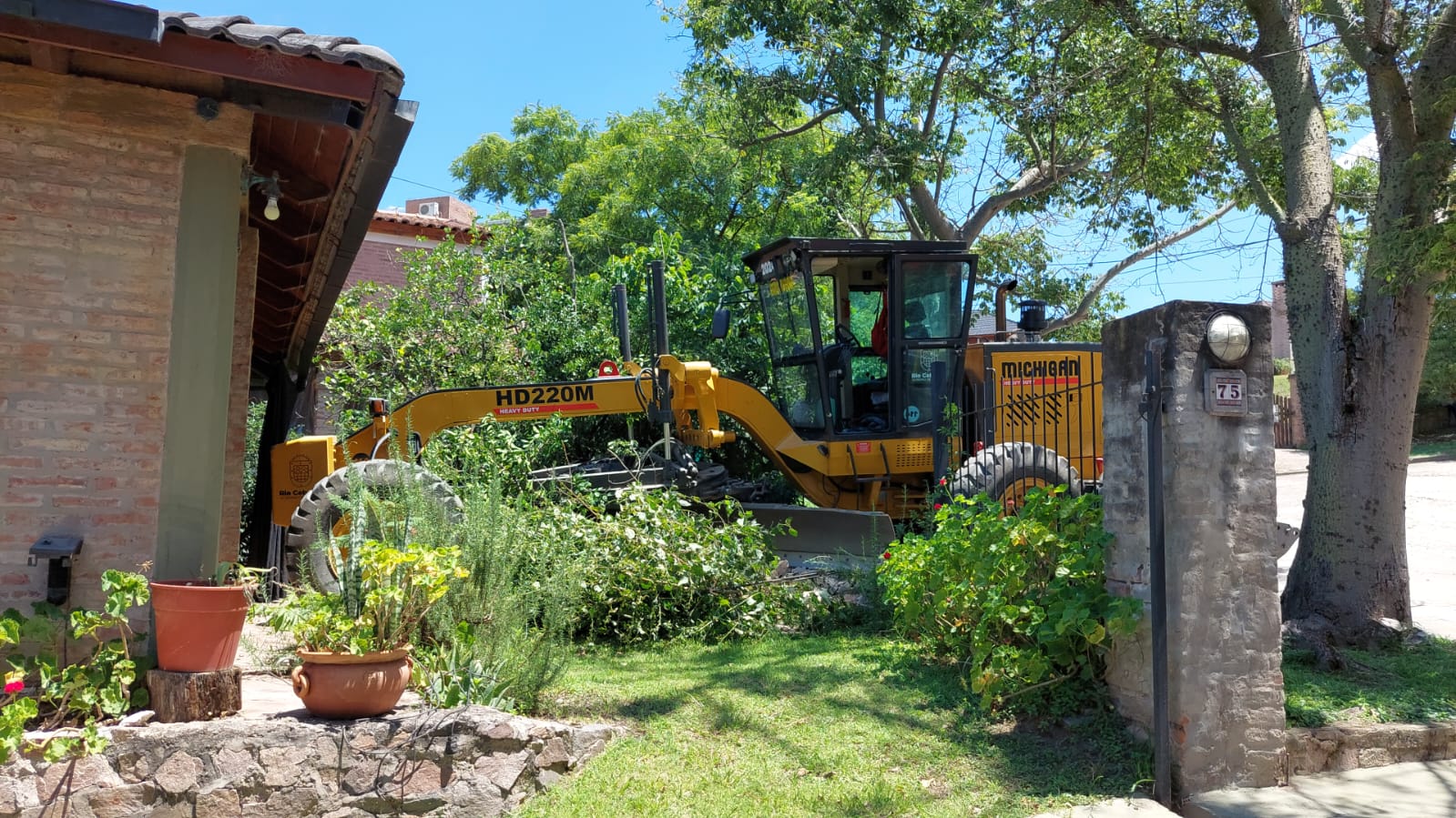 Los operarios municipales resolvieron dejarla varada en una calle con pendiente, y la “aseguraron” con trozos de hormigón que encontraron en la vereda del sector. Tras el paso de algunas horas la máquina venció los topes y comenzó a descender por la pendiente, hasta impactar con la vivienda.