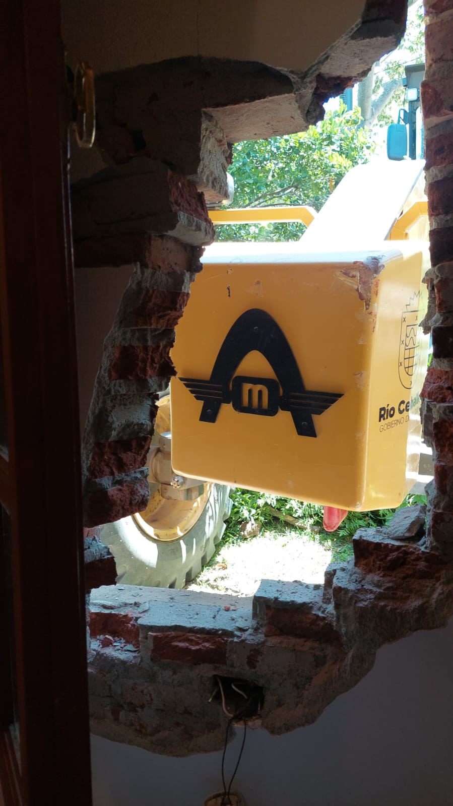 Río Ceballos. Una motoniveladora municipal se incrustó en una casa.