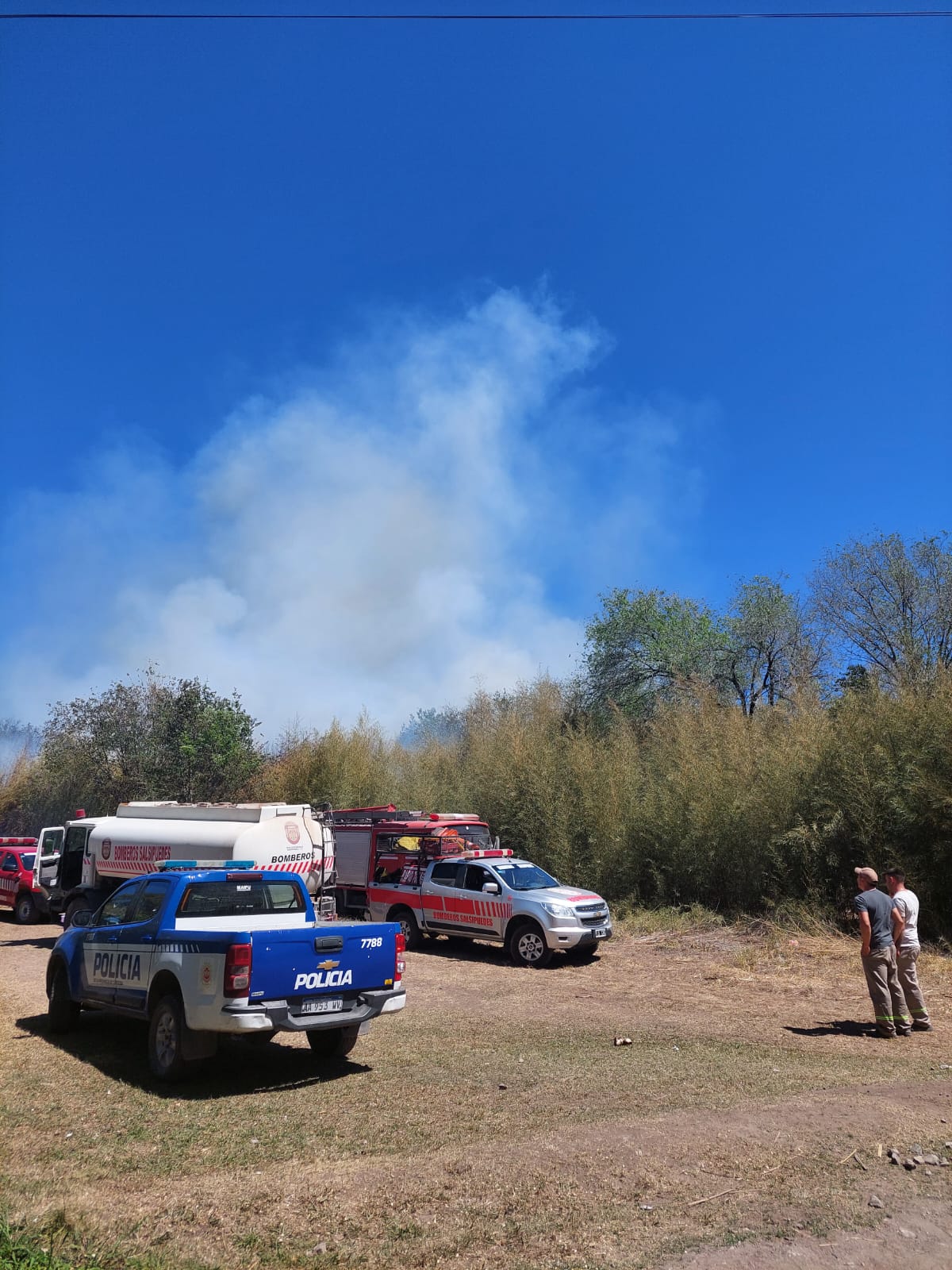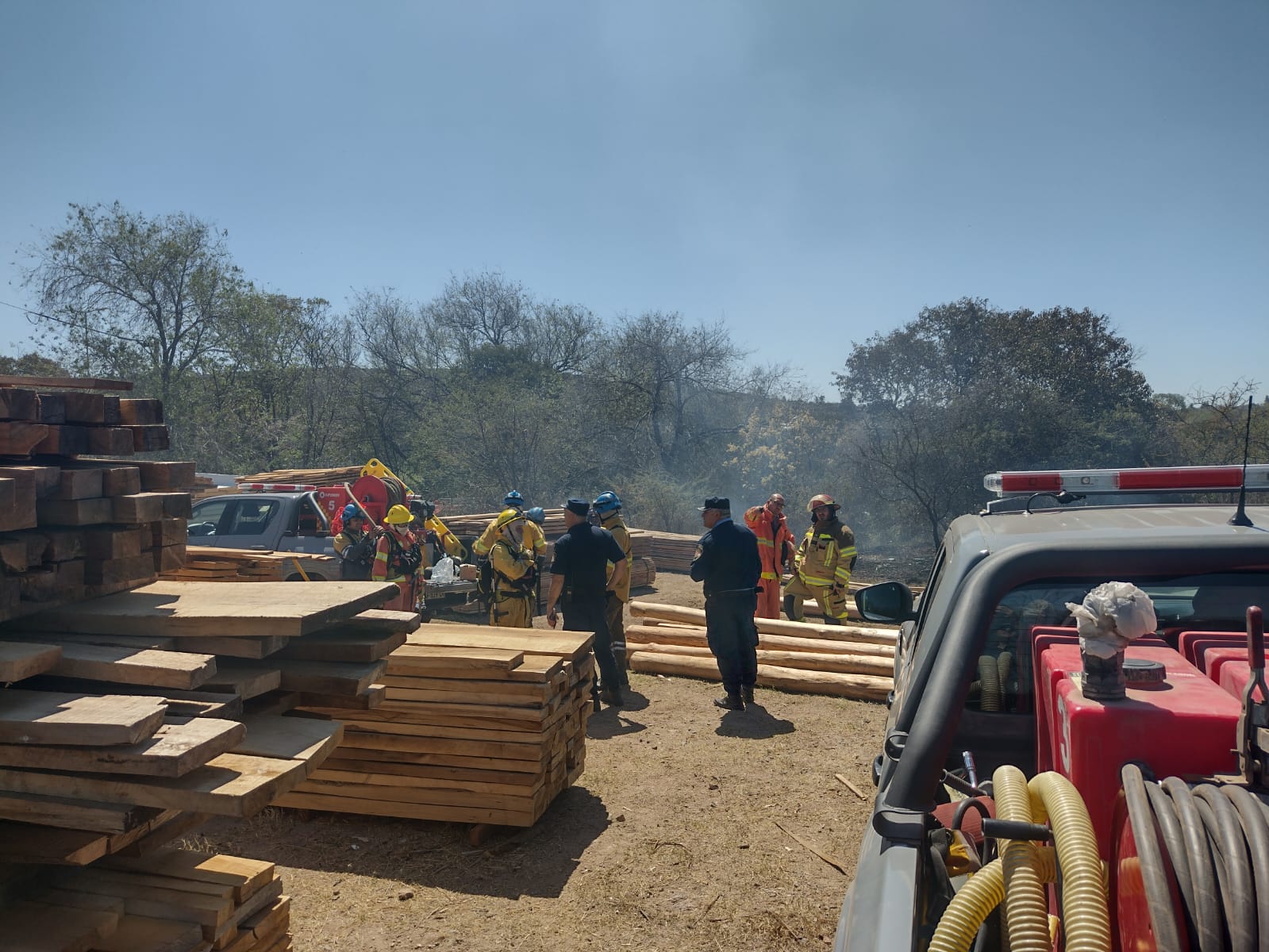 Gómez relató que el fuego se inició en un cañaveral próximo a la E-53, y llegó a estar a unos 10 metros de alcanzar a la maderera Rosatto Rurales, donde se almacena una gran cantidad de material combustible.