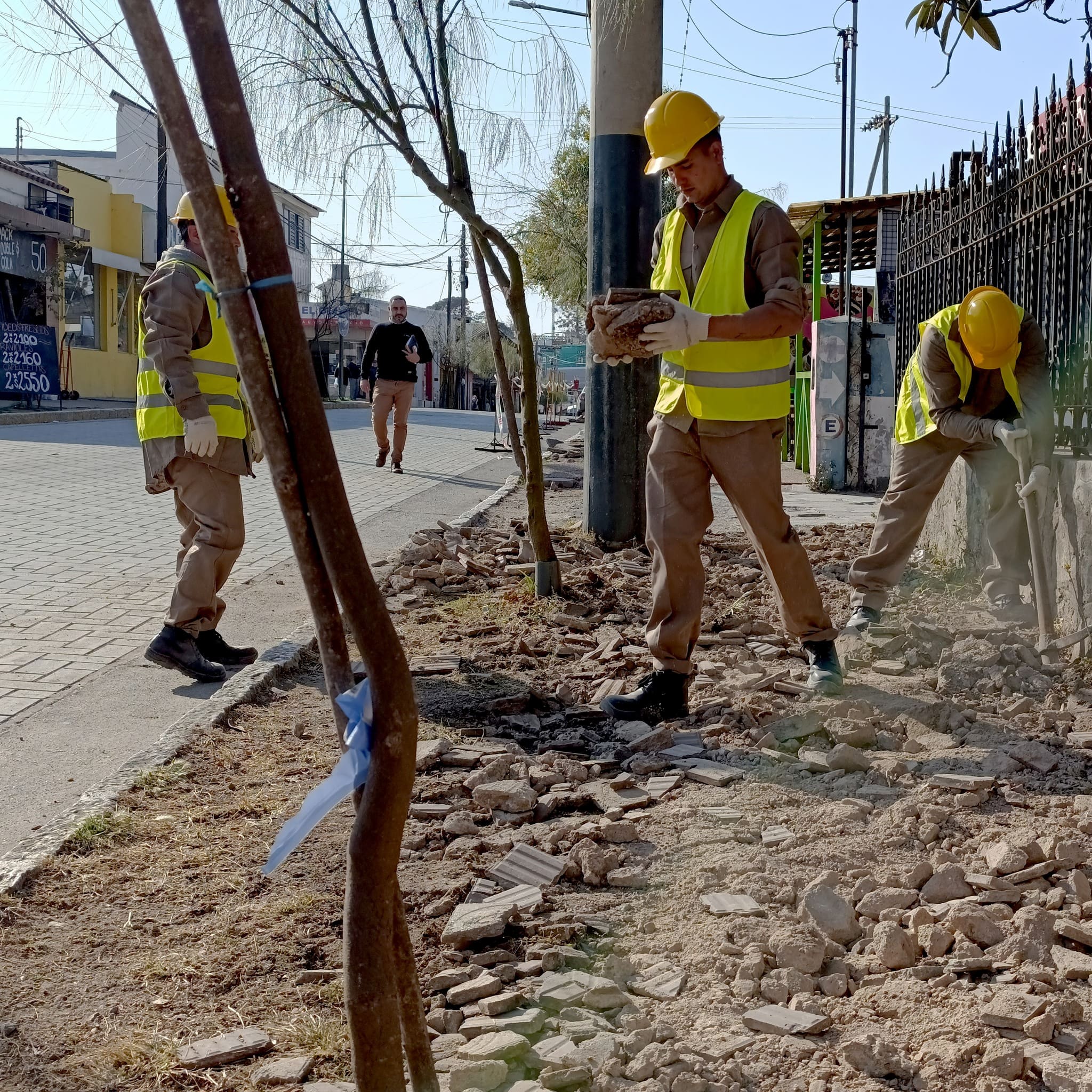 Los trabajos se desarrollan sobre tres cuadras de la vereda de mano derecha, en dirección este – oeste.