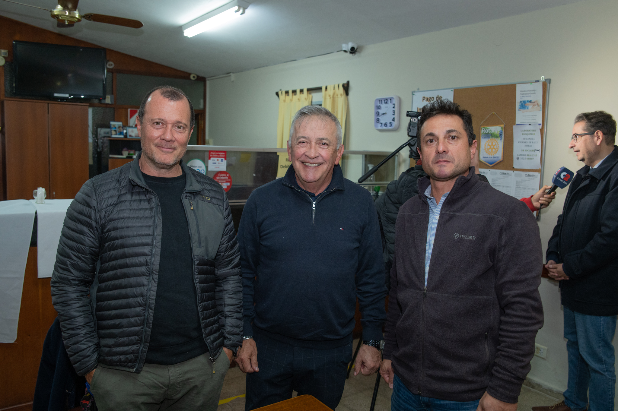 Rubén Borello y los empresarios que conforman una comisión que aporta fondos a la misma obra.