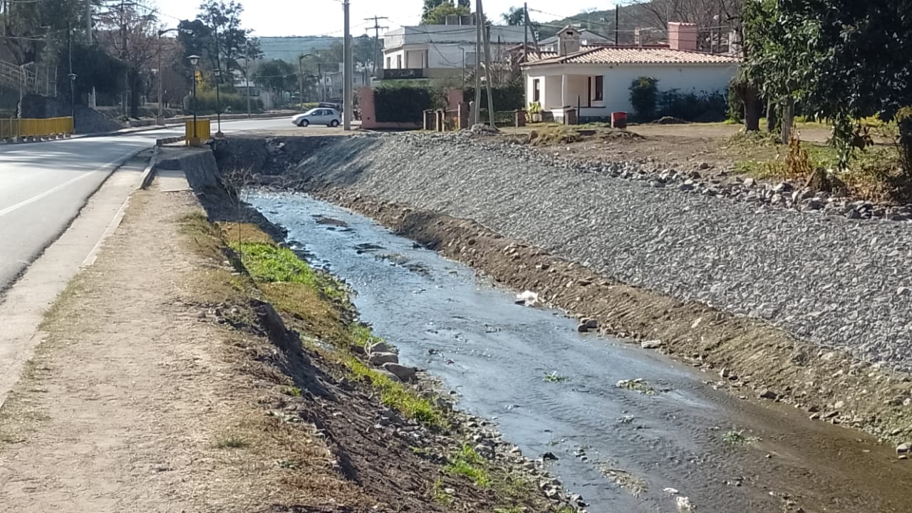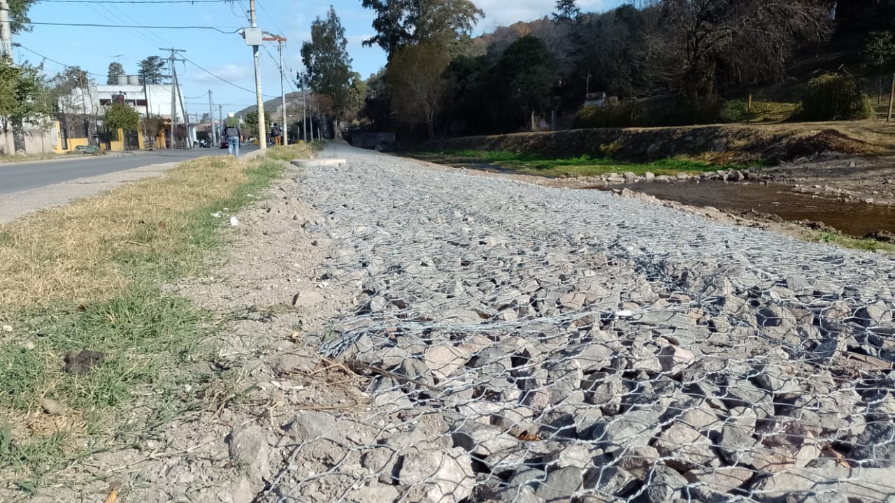 El empedrado instalado en las márgenes del río se encuentra contenido por un mallado que lo rodea completamente, y que evitaría resquebrajar los caños centrales de la cloaca en caso de fuertes crecidas, como la ocurrida en el 15 de febrero de 2015.