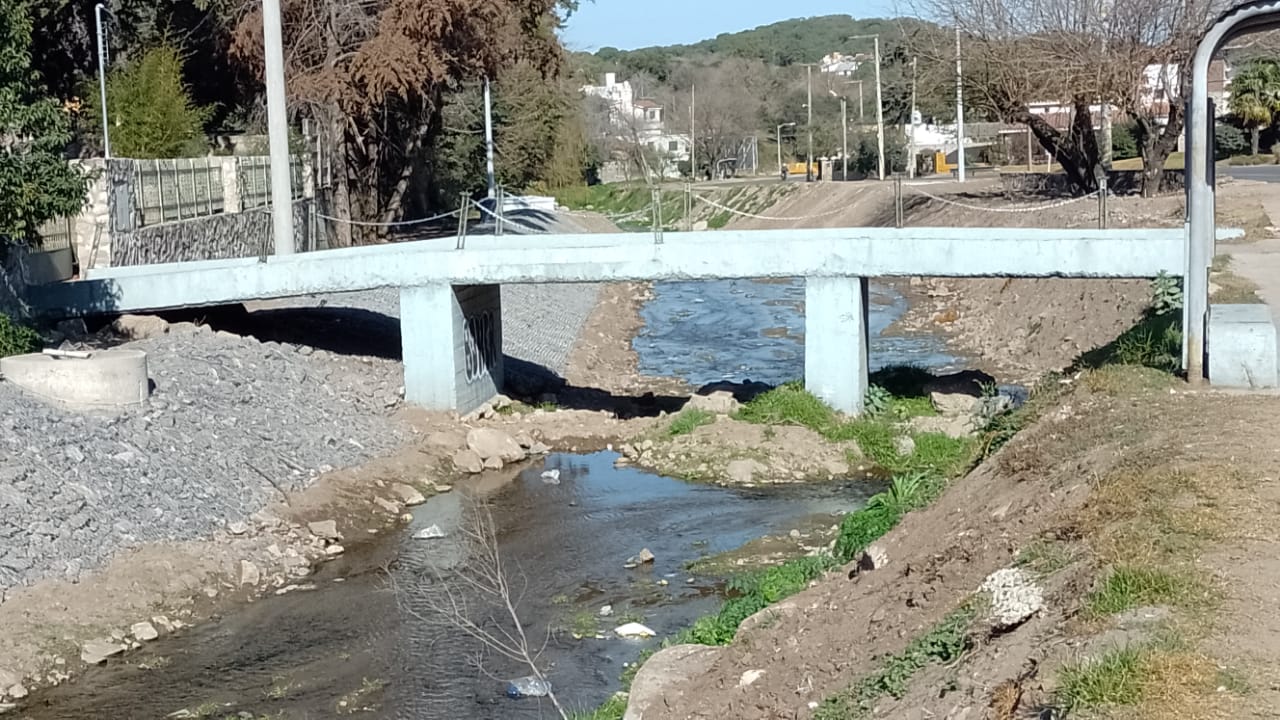 Río Ceballos. Un 20 % del río quedó engavionado para contener la obra de cloacas ante las crecientes.