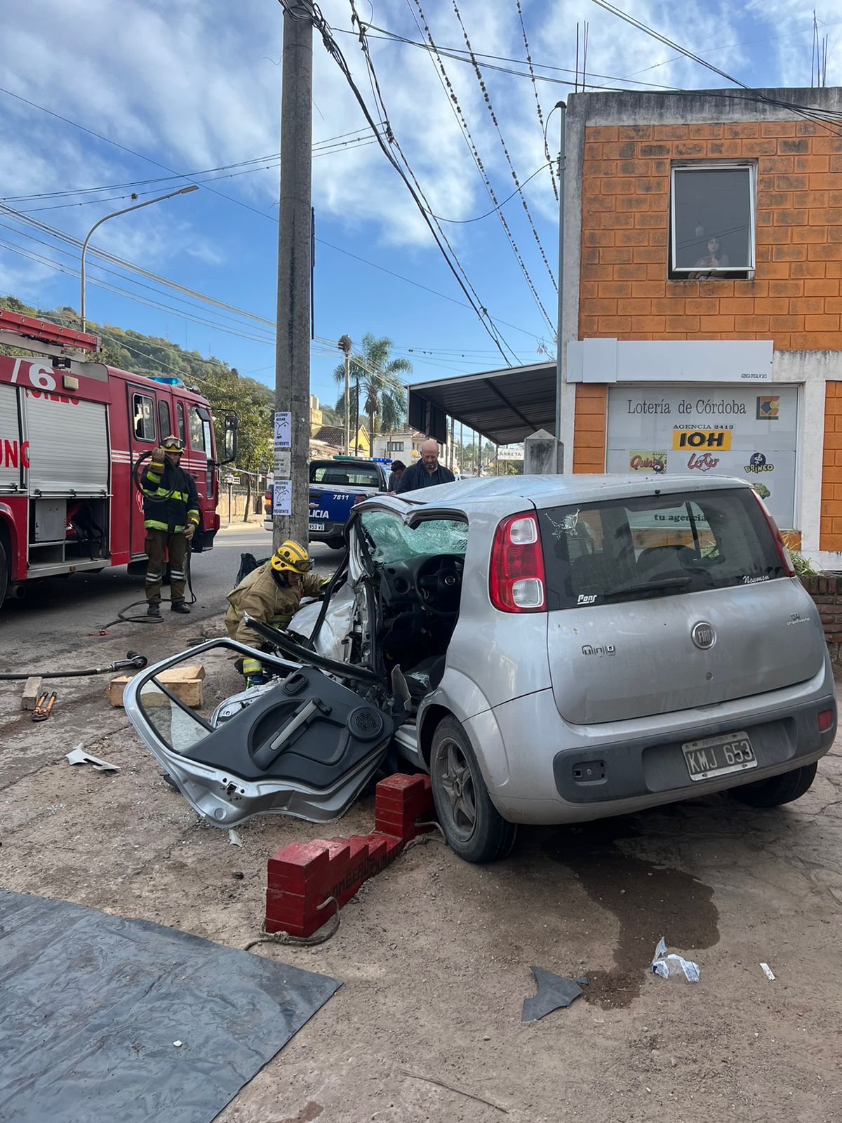 El hombre tuvo que ser rescatado por bomberos de Unquillo y Mendiolaza del interior de un Fiat Uno gris, ya que se encontraba atrapado en el automóvil.
