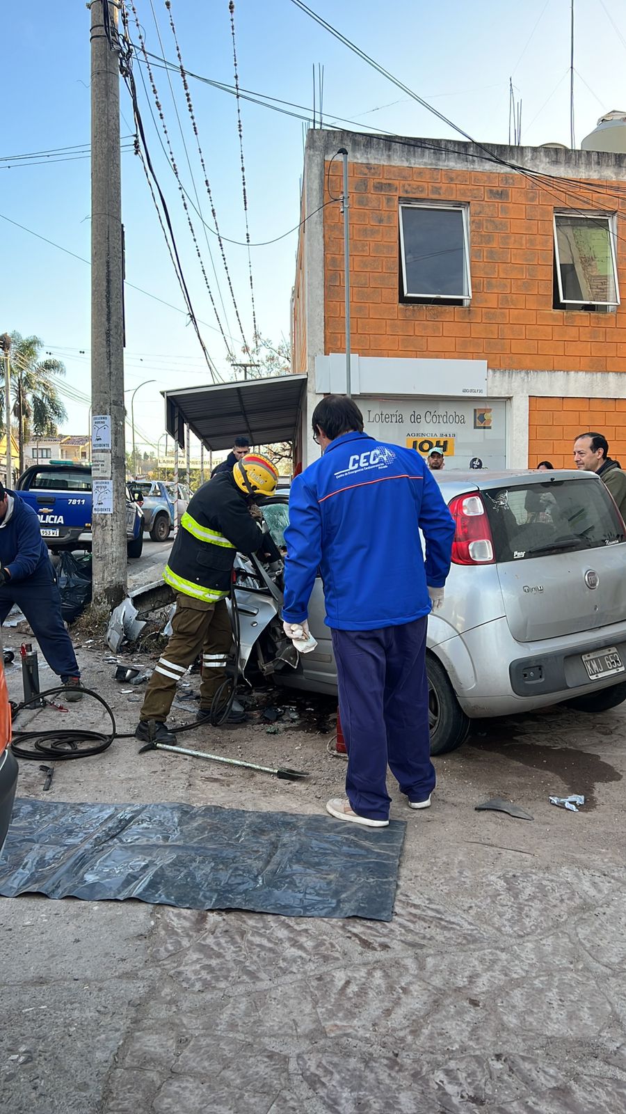 Para retirarlo del habitáculo, los bomberos tuvieron que cortar la puerta delantera del auto que había quedado impactado contra un poste de tendido eléctrico, lo que evidenció la alta velocidad a la que circulaba.