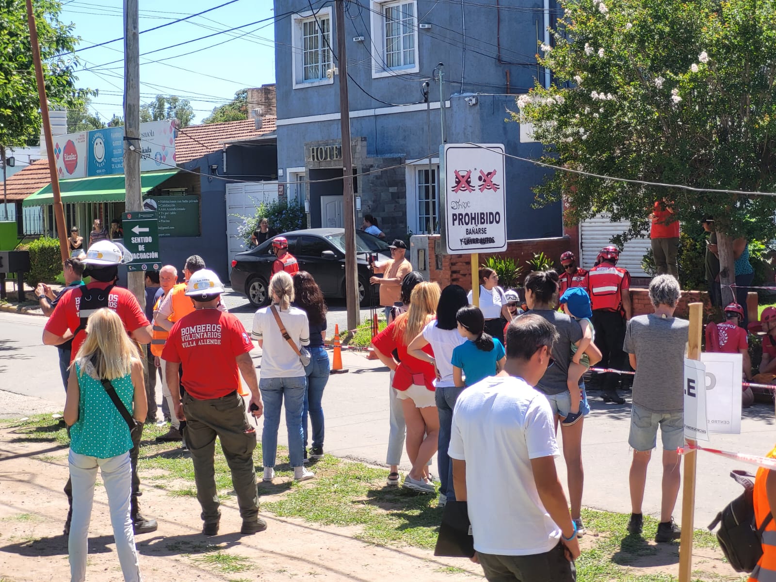 La actividad inició a las 11 horas y participaron los bomberos de Villa Allende, miembros del ETAC, Seguridad Ciudadana, el servicio de Emergencias CEC, autoridades del ejecutivo, la policía y vecinos de la zona para simular la evacuación.